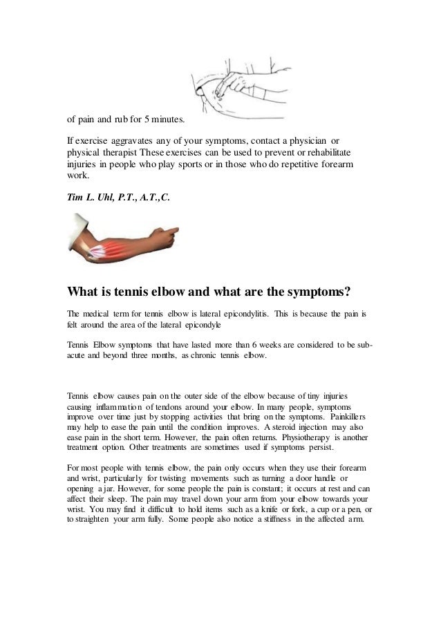 The pain may also extend into the back of the forearm and grip strength may be weak. Over time, the forearm muscles and stage 3: What is a lateral epicondylitis release? In this article, we will show you two tennis elbow exercise treatments that you can do alongside your regular rehabilitation sessions with powerball. Elbow joint examination frequently appears in osces and you'll be expected to identify the relevant clinical signs using your examination skills.